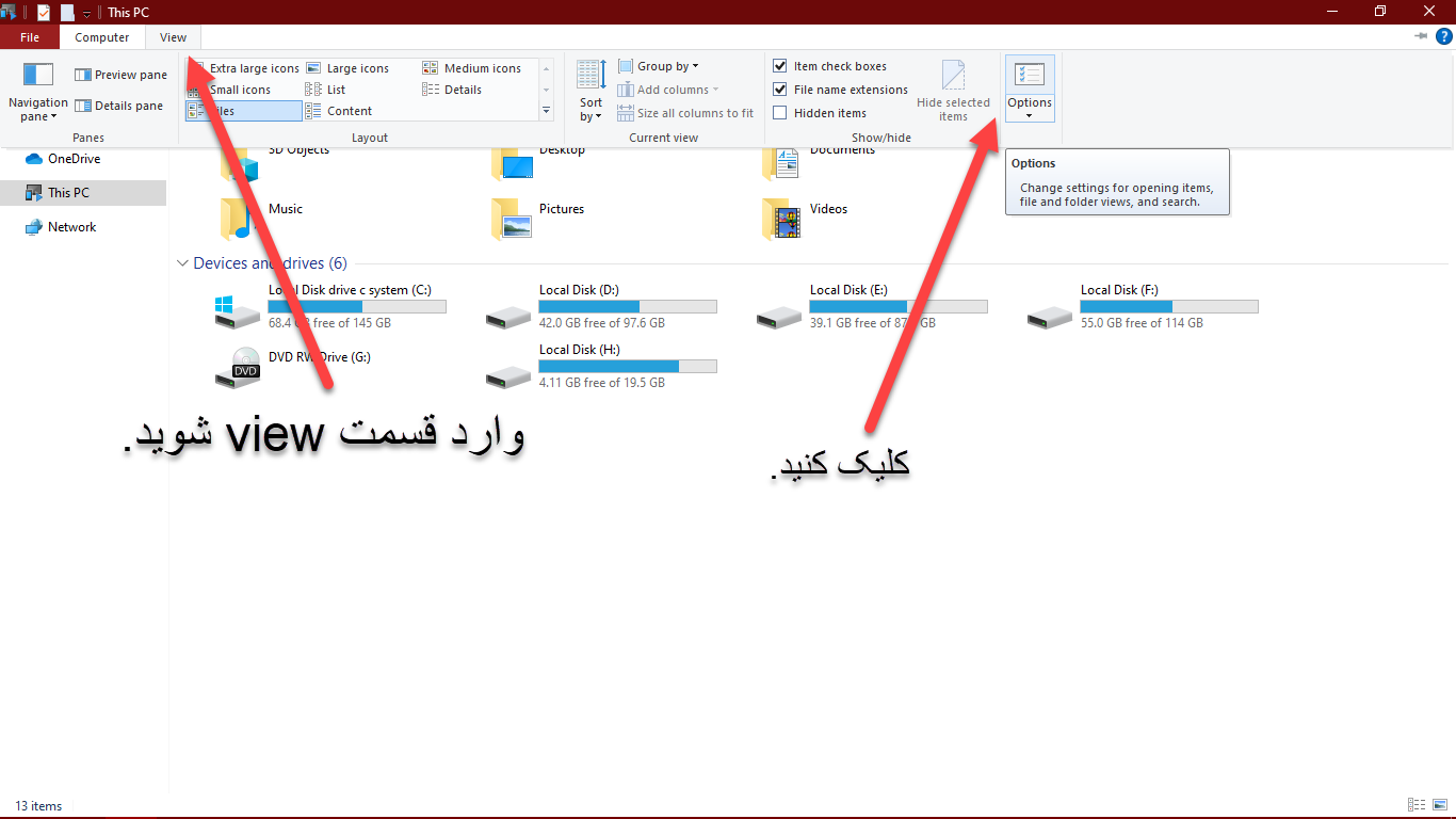 آموزش اجرا کردن  تنظیمات فایل اکسپلورر به صورت تصویری