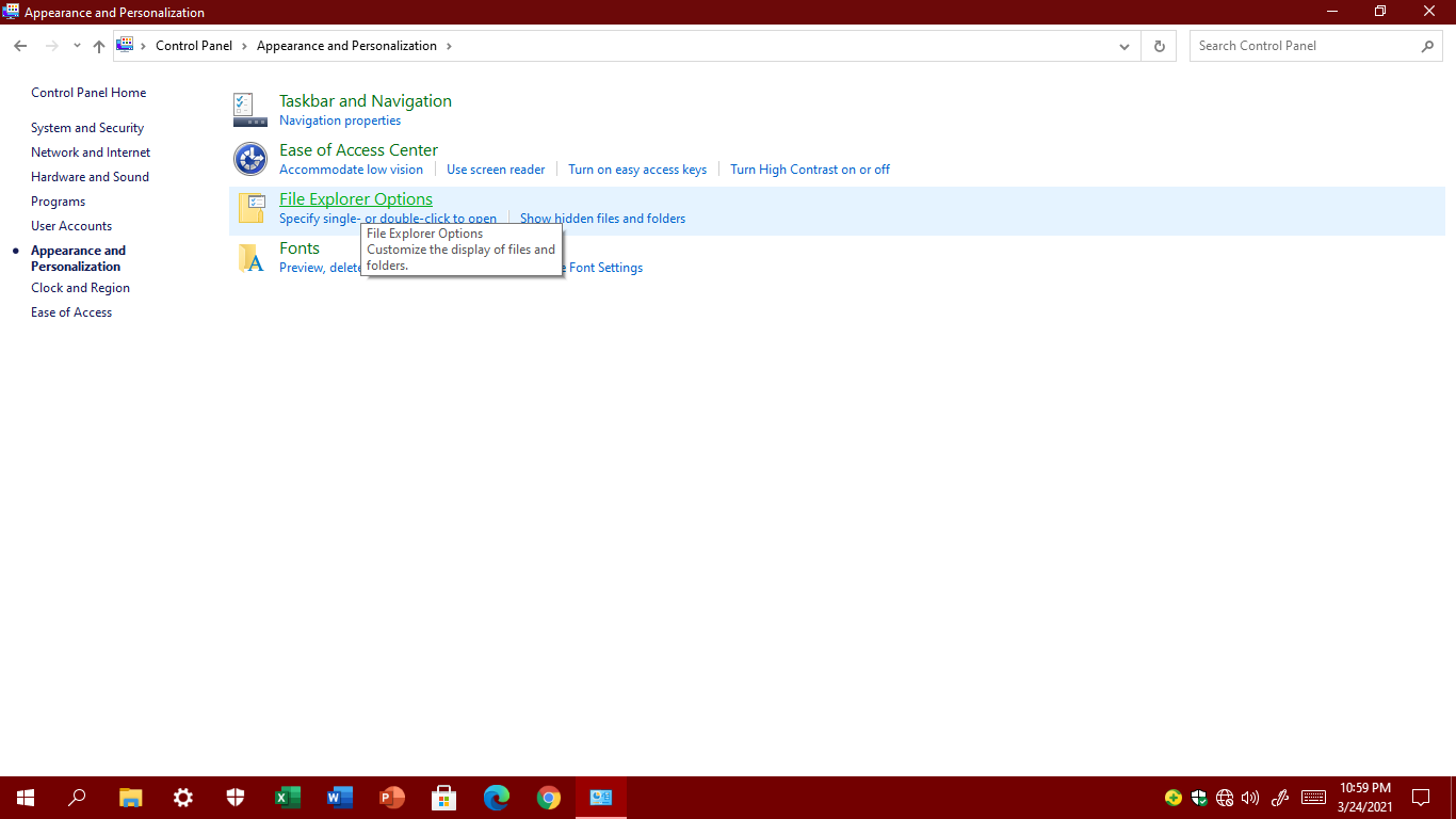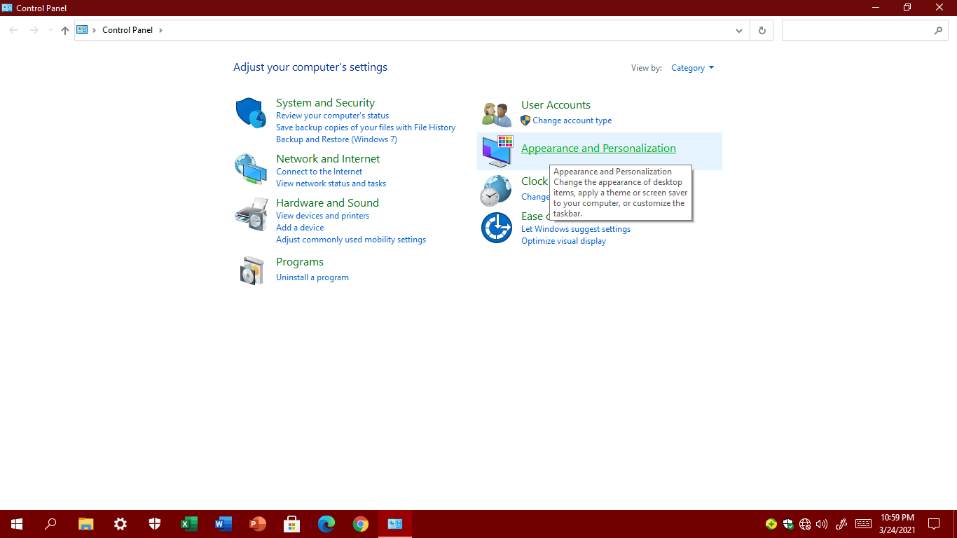 2. در قسمت Appearance and Personalization کلیک کنید.